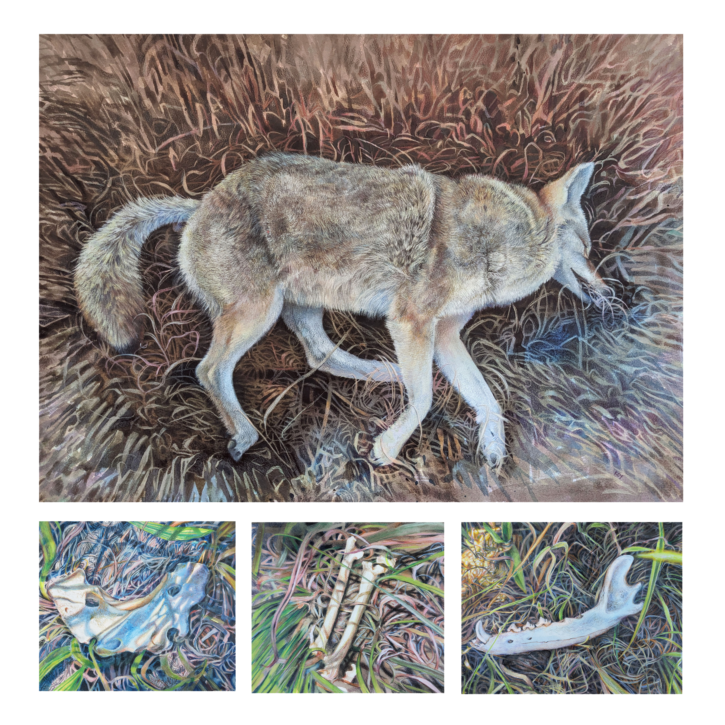 Watercolor and colored pencil on paper. 30x22”, 8x10", 5.5x6.5", 6.5x7.5"
